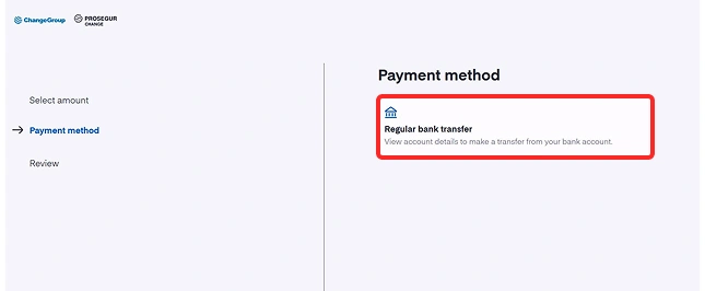 - Selecciona «Transferencia bancaria estándar» como método de pago.