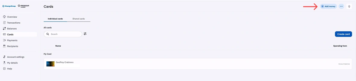 - Haz clic en el botón «Añadir dinero» en la parte superior derecha de la pantalla.